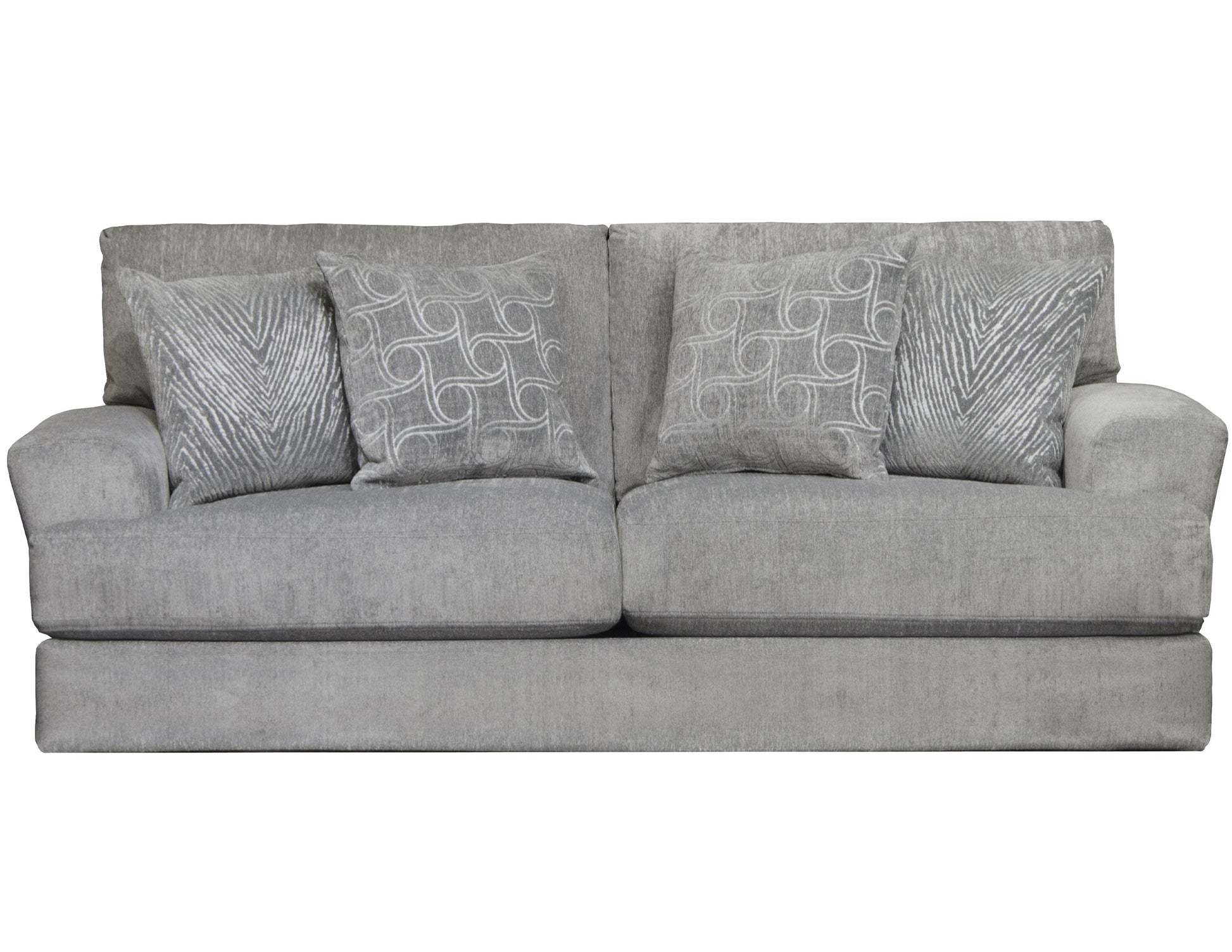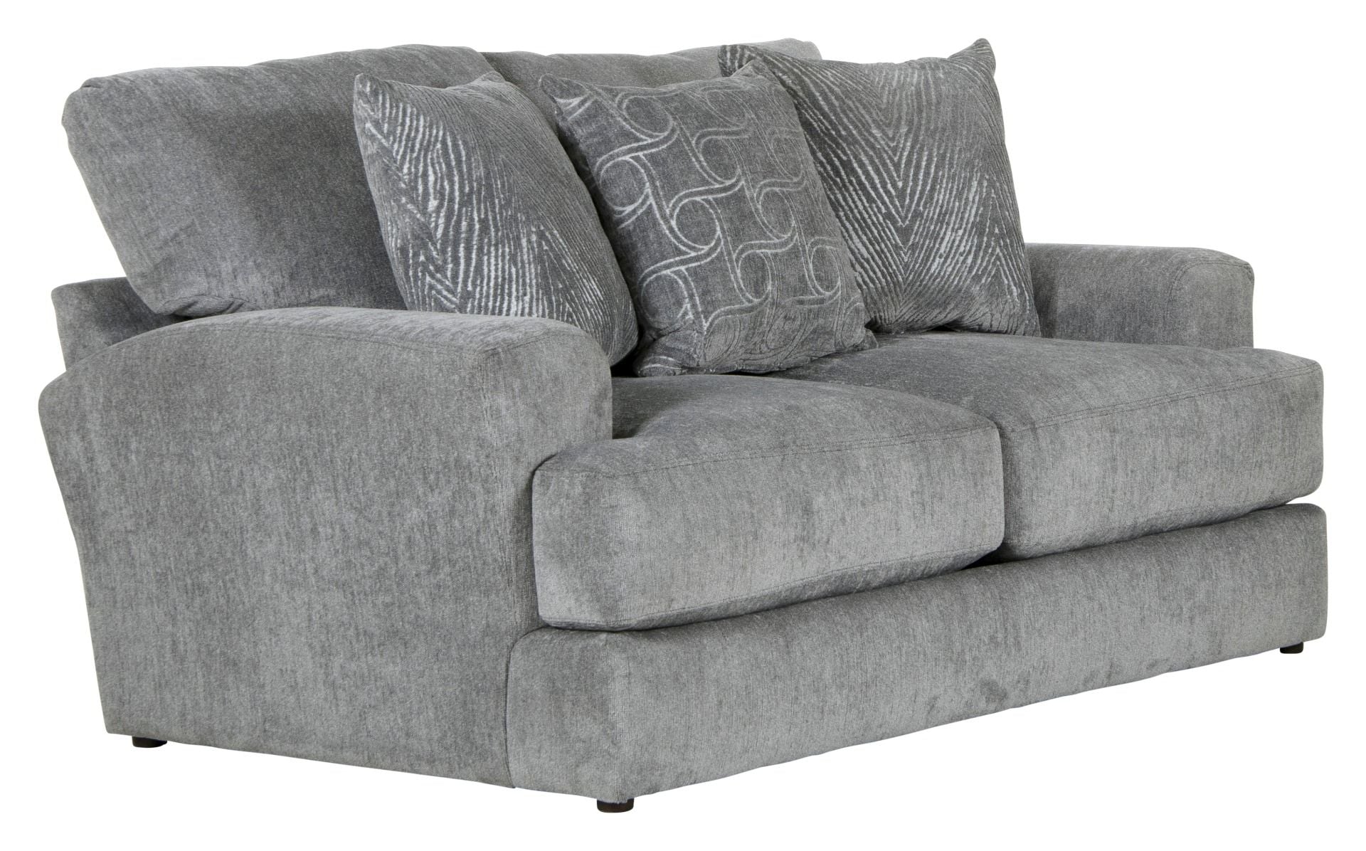 Luxuriously covered in Chenille body fabric, the Lamar sofa and loveseat is made with Extra think "Cuddle cushion" for maximum comfort in the United States of America. Comes with large square arms on either side and extra accent pillows. The gray colors used in this item make for a shark finish. *Includes only sofa and loveseat. Accent pieces and chairs sold separately.