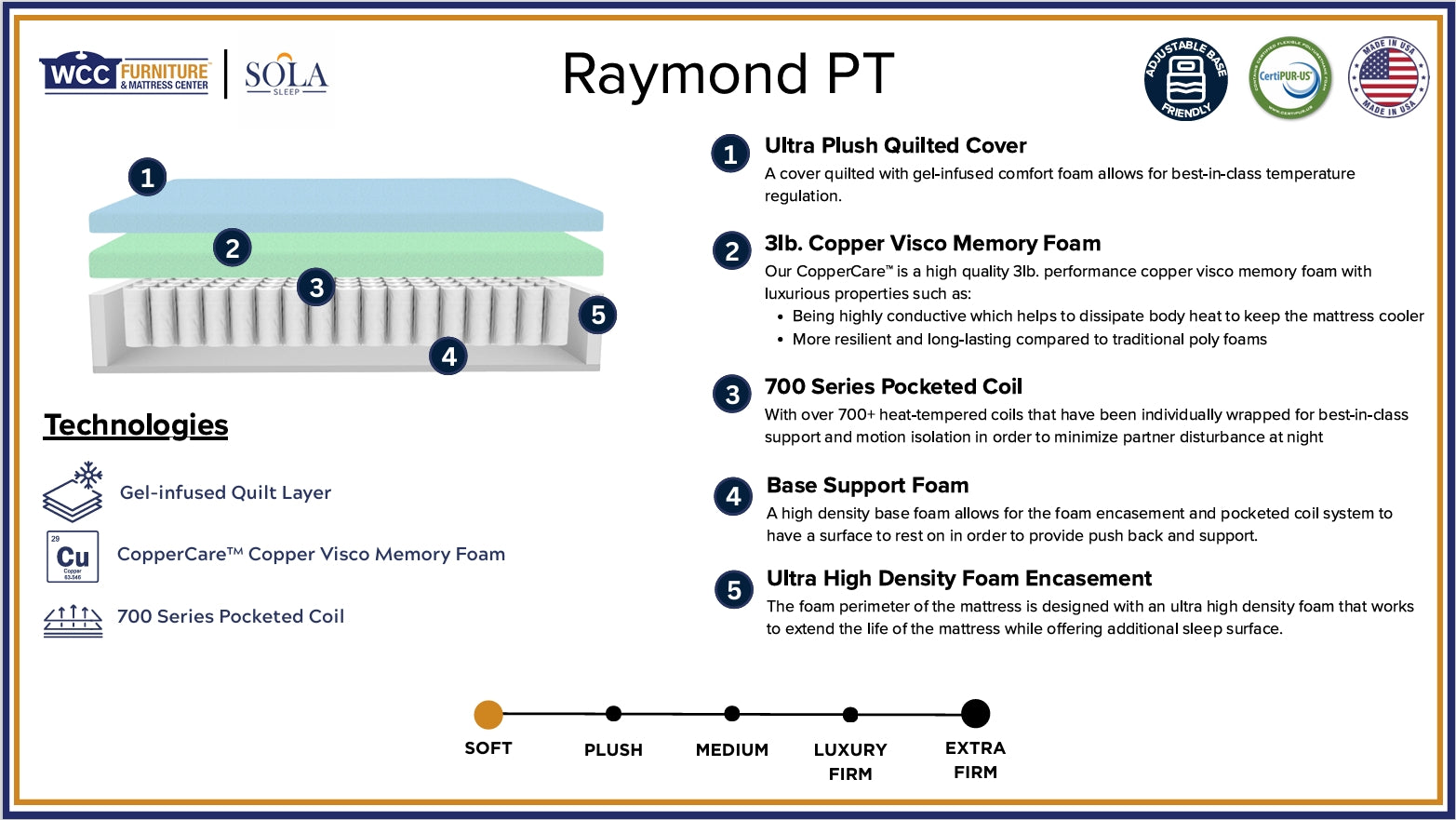 - CopperCare performance copper visco memory foam helps dissipate body heat to keep the mattress cooler and is more resilient than traditional poly foams.